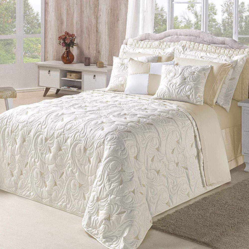 Cobre Leito Melody King Bordado 3 Peças Hipercal 180 Fios 100% Poliéster - Marfim