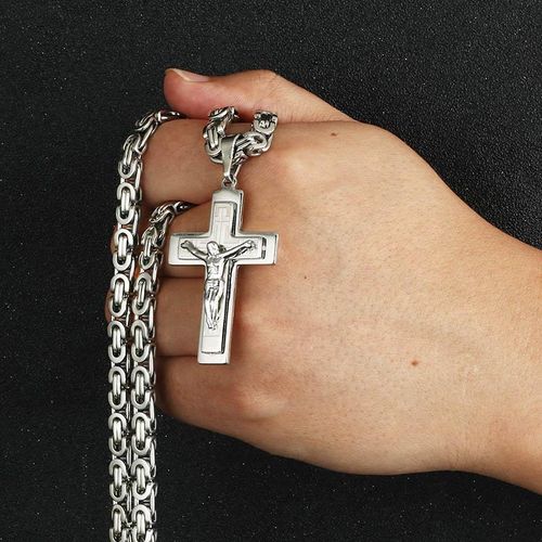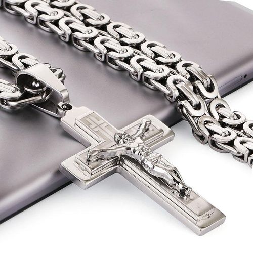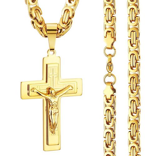 Colar de Cruz Longa Bizantina em Aço Inoxidável para Homens 55cm 22polegadas / ouro