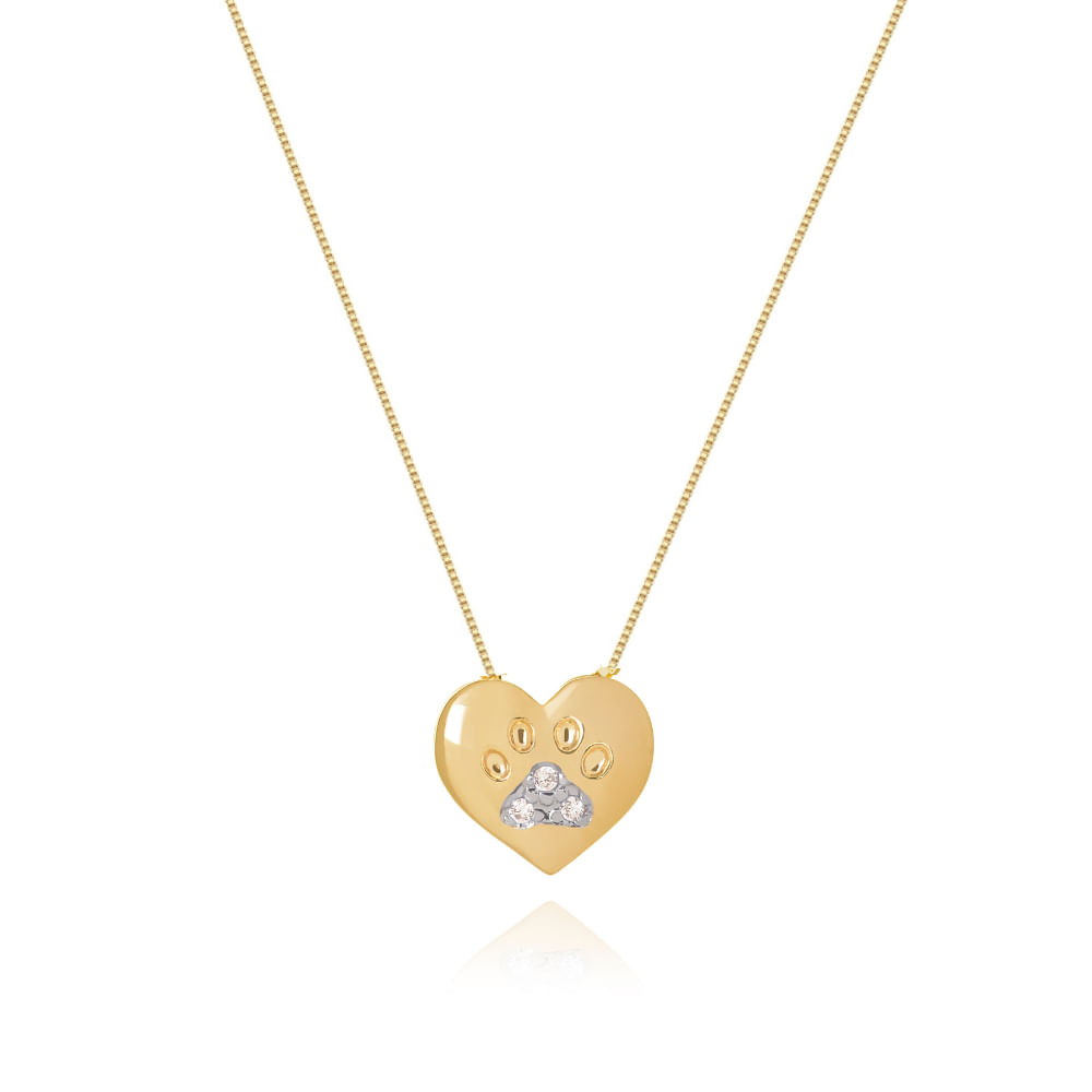 Colar de Patinha Pet com zirconias banhado em ouro semijoia