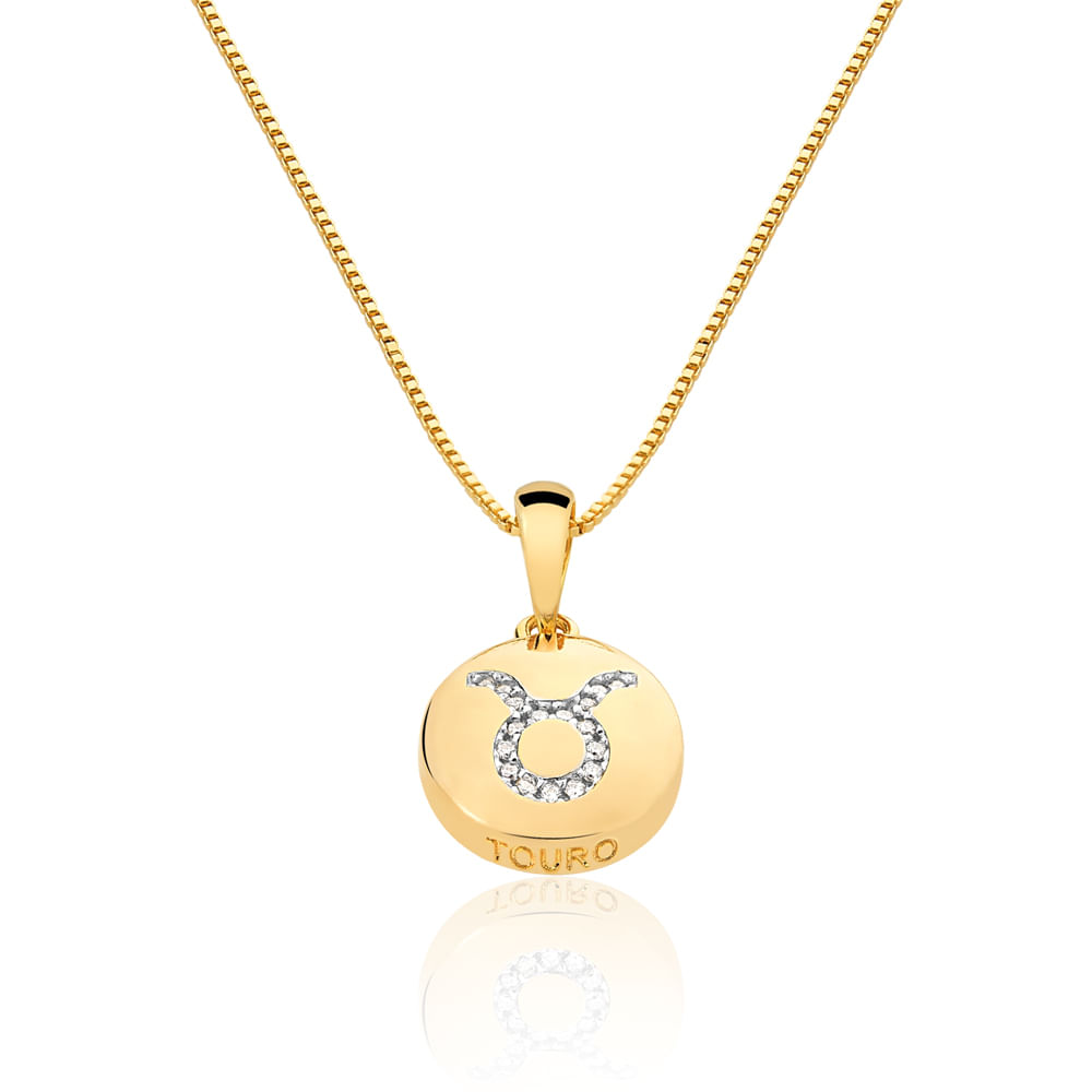 Colar De Signo Touro Com Zirconias banhado em ouro semijoia