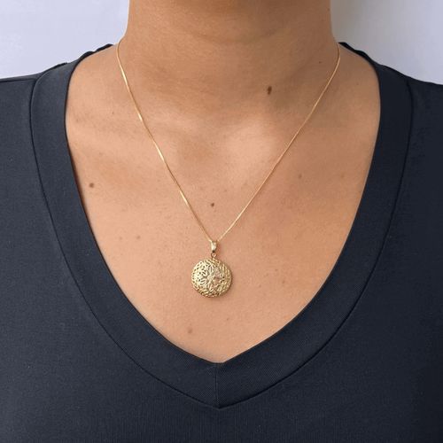 Colar Relicário Redondo Vazado banhado em ouro 18k - corrente 45cm + 5cm