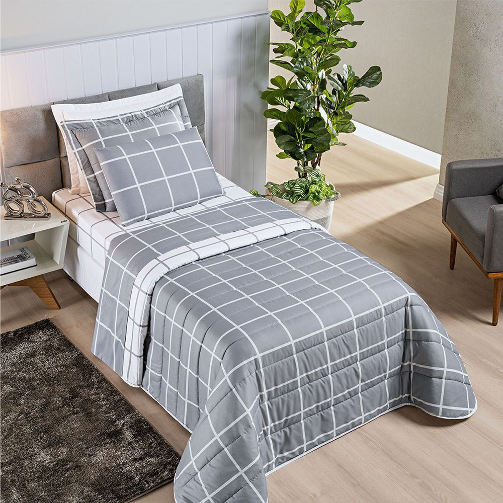 Colcha Cobre Leito Esplendor Solteiro 2 Peças Dupla Face - Cinza - 100% Poliéster