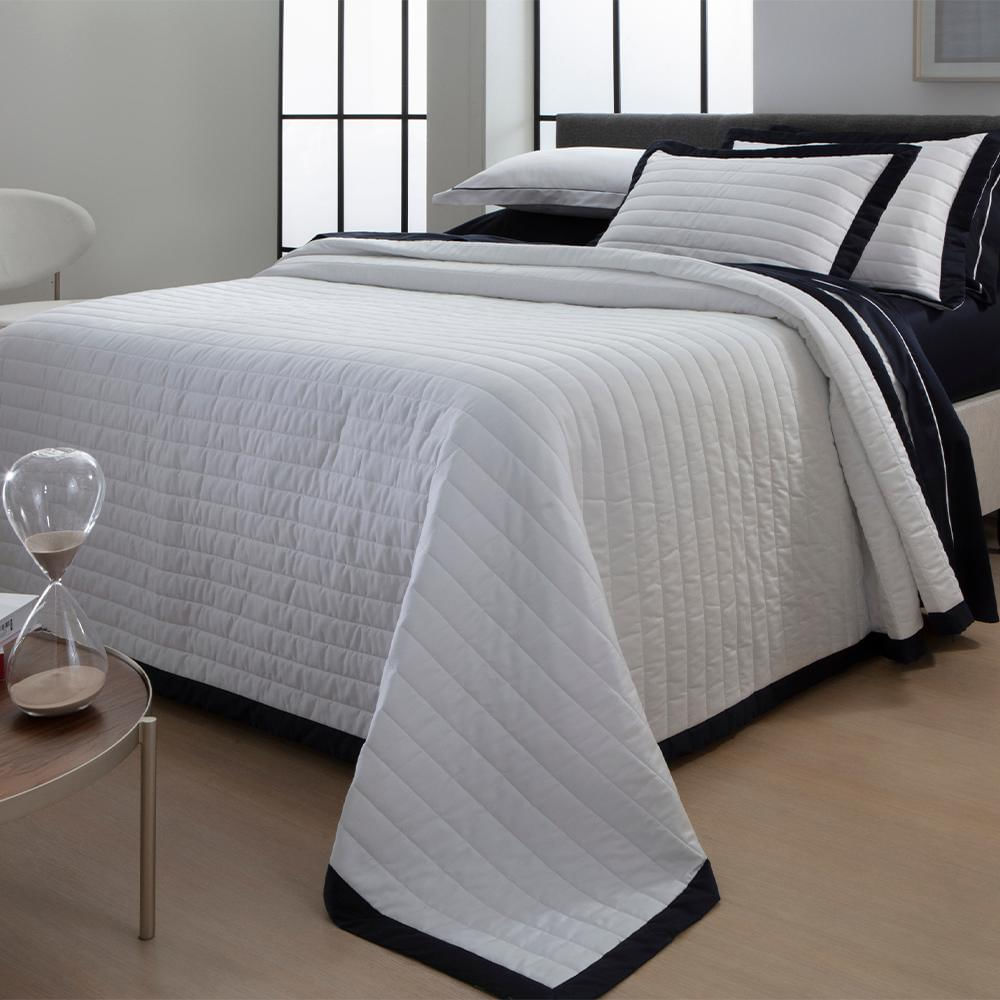 Colcha Stripes Kacyumara Satineé 300 fios King 2,80mx2,60m Branco/Marinho