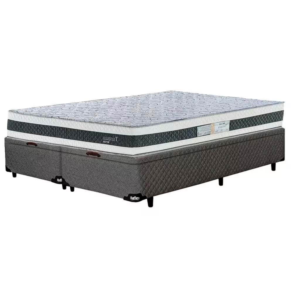 Colchão Queen Size Turquia com Molas Ensacadas e Pillow Inn Biflex + Base Box Itaflex Universal com Baú Branco/Grafite/Chumbo