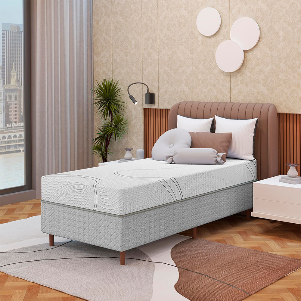 Adquira agora o conjunto colchão + base box solteiro e leve mais conforto, elegância e qualidade para o seu quarto, perfeito para quem busca um sono reparador com excelente custo-benefício!
