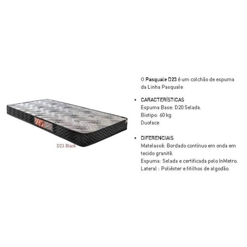 CARACTERÍSTICAS INTERNAS DO COLCHÃO Tipo de Estrutura do Bloco de Espuma - D23 Camadas Interna do Estofamento de Espuma - Alta Qualidade