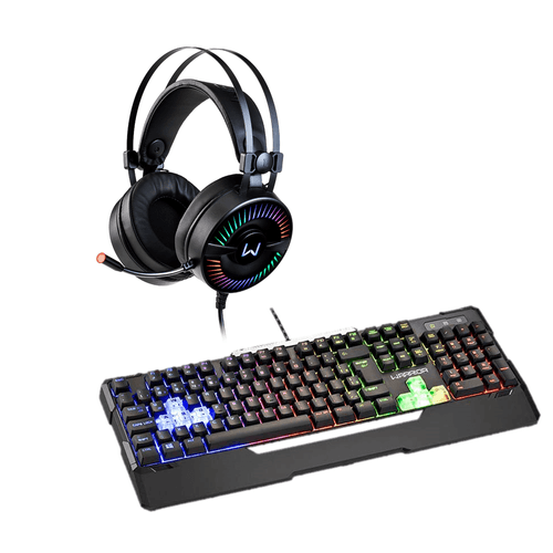 Combo Gamer - Headset Flamma USB Stereo LED RGB e Teclado Wakiza Semi Mecânico LED Warrior - PH306K PH306K