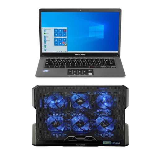 Combo Office - Notebook Multilaser Legacy Cloud, com Windows 10 Home 2GB 32GB Cinza e Cooler Para Notebook Com 6 Fans Led Azul - AC282K AC282K