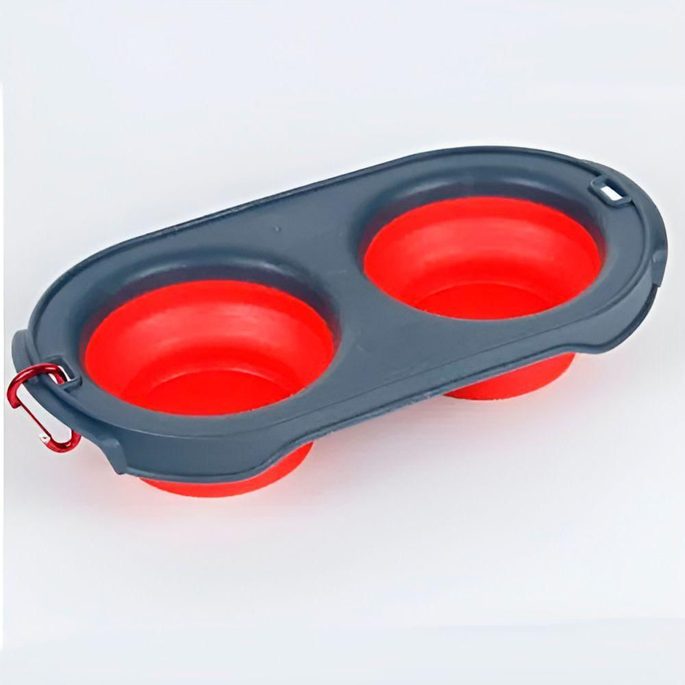 Comedouro Duplo Retrátil Portátil Com Gancho Cães Gatos