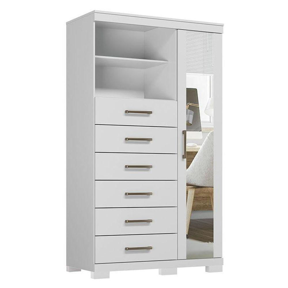 Comoda 1 Porta 6 Gavetas Marabá Com Espelho E Pés Branco Brilho - Santos Andirá