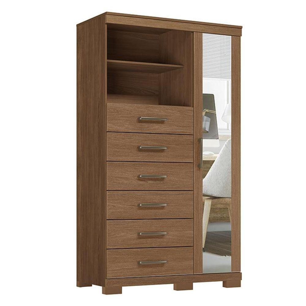 Comoda 1 Porta 6 Gavetas Marabá Com Espelho E Pés Jatobá Acetinado - Santos Andirá