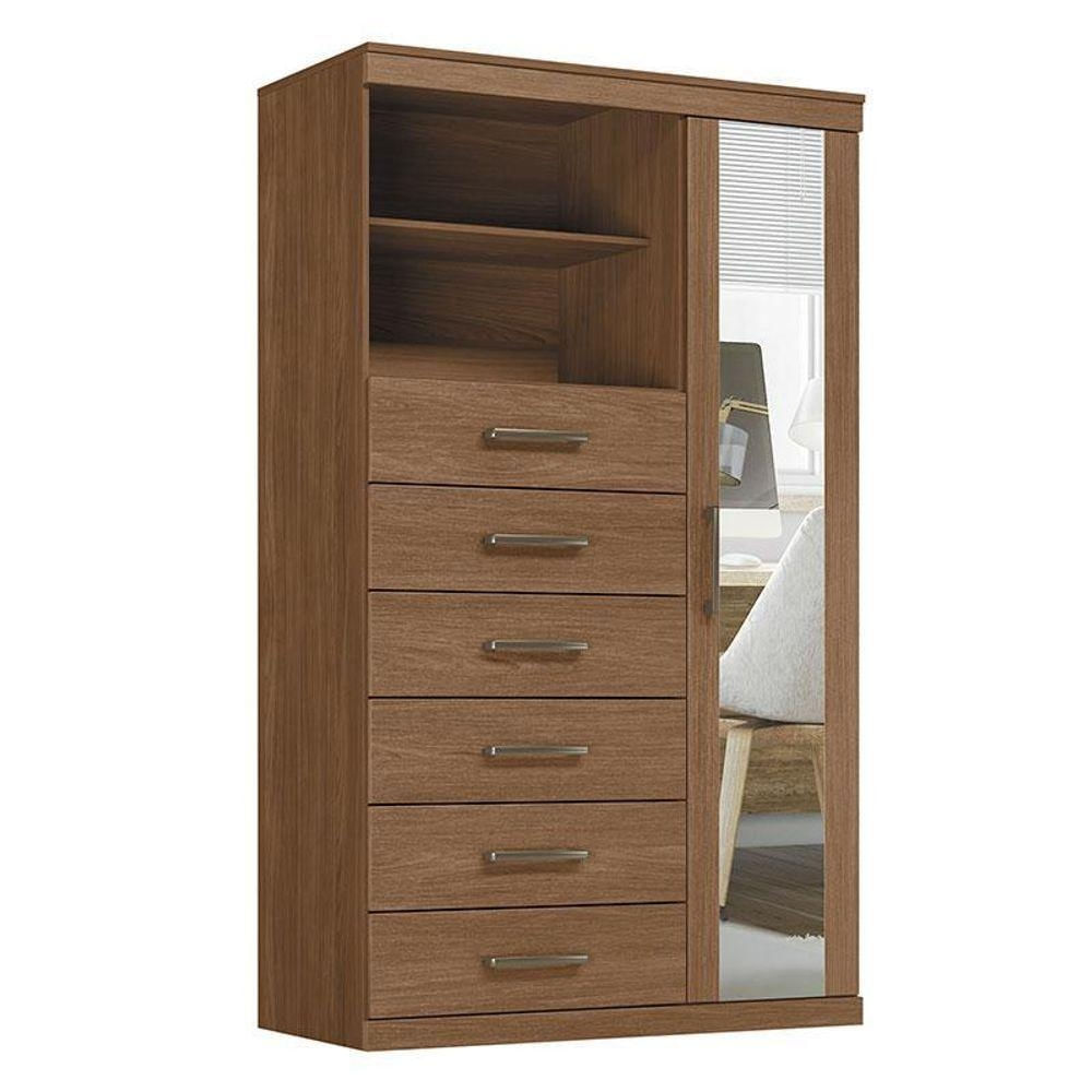 Comoda 1 Porta 6 Gavetas Marabá Com Espelho Jatobá Acetinado - Santos Andirá
