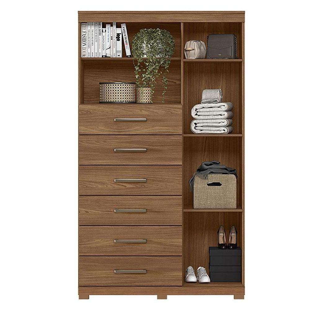 Comoda 1 Porta 6 Gavetas Marabá Com Pés Jatobá Acetinado - Santos Andirá