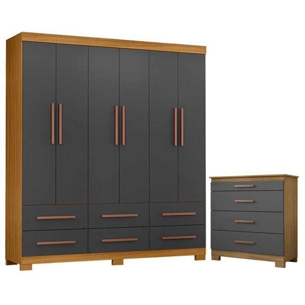 Cômoda 4 Gavetas New E Guarda Roupa Casal New Kansas Carvalho Americano Grafite- Incorplac