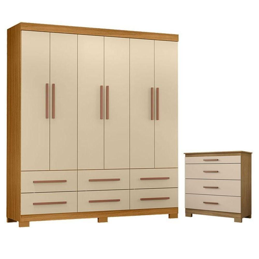 Cômoda 4 Gavetas New E Guarda Roupa Casal New Kansas Carvalho Americano Off White - Incorplac