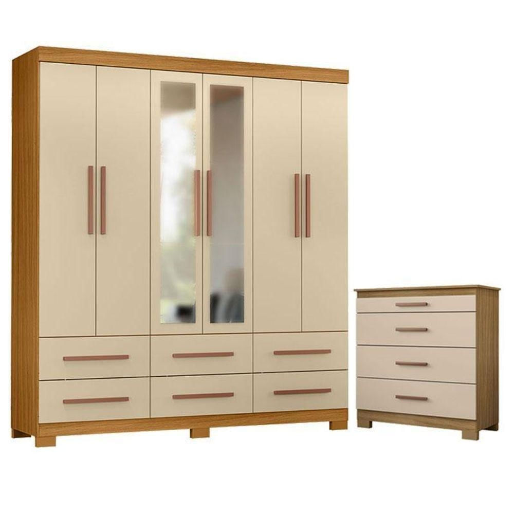 Cômoda 4 Gavetas New E Guarda Roupa Casal New Kansas Com Espelho Carvalho Americano Off White - Incorplac