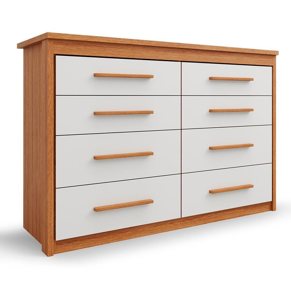 Comoda 8 Gavetas Para Quarto Elegance Freijo Com Off White - Batrol