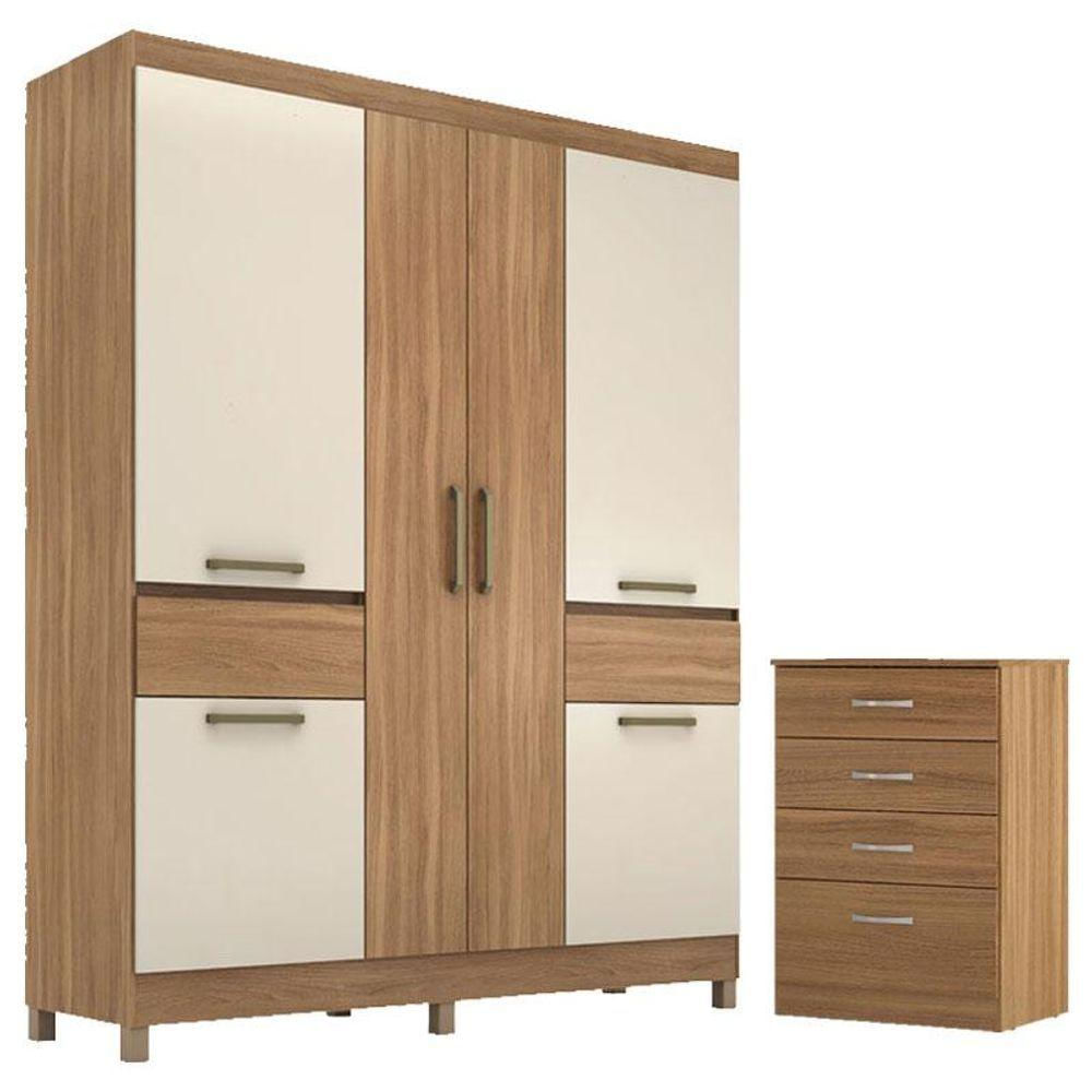 Cômoda Astral E Guarda Roupa Casal Mauá Amêndola Off White - Demóbile