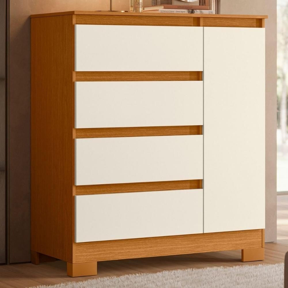Cômoda Buffet 4 Gavetas Quarto Sala Pés Retrô Luxo Cinamomo Mel Off White