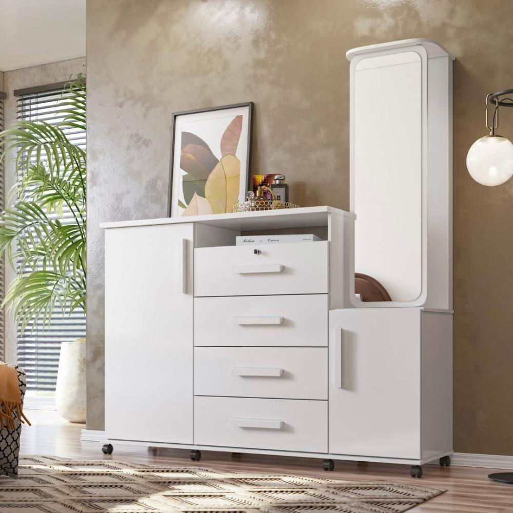 A Cômoda Copacabana da Lukaliam Móveis é perfeita para quem busca um móvel espaçoso e elegante. Com amplo espaço interno, espelho giratório com porta-objetos e acabamento refinado, ela proporciona praticidade e organização ao seu ambiente.