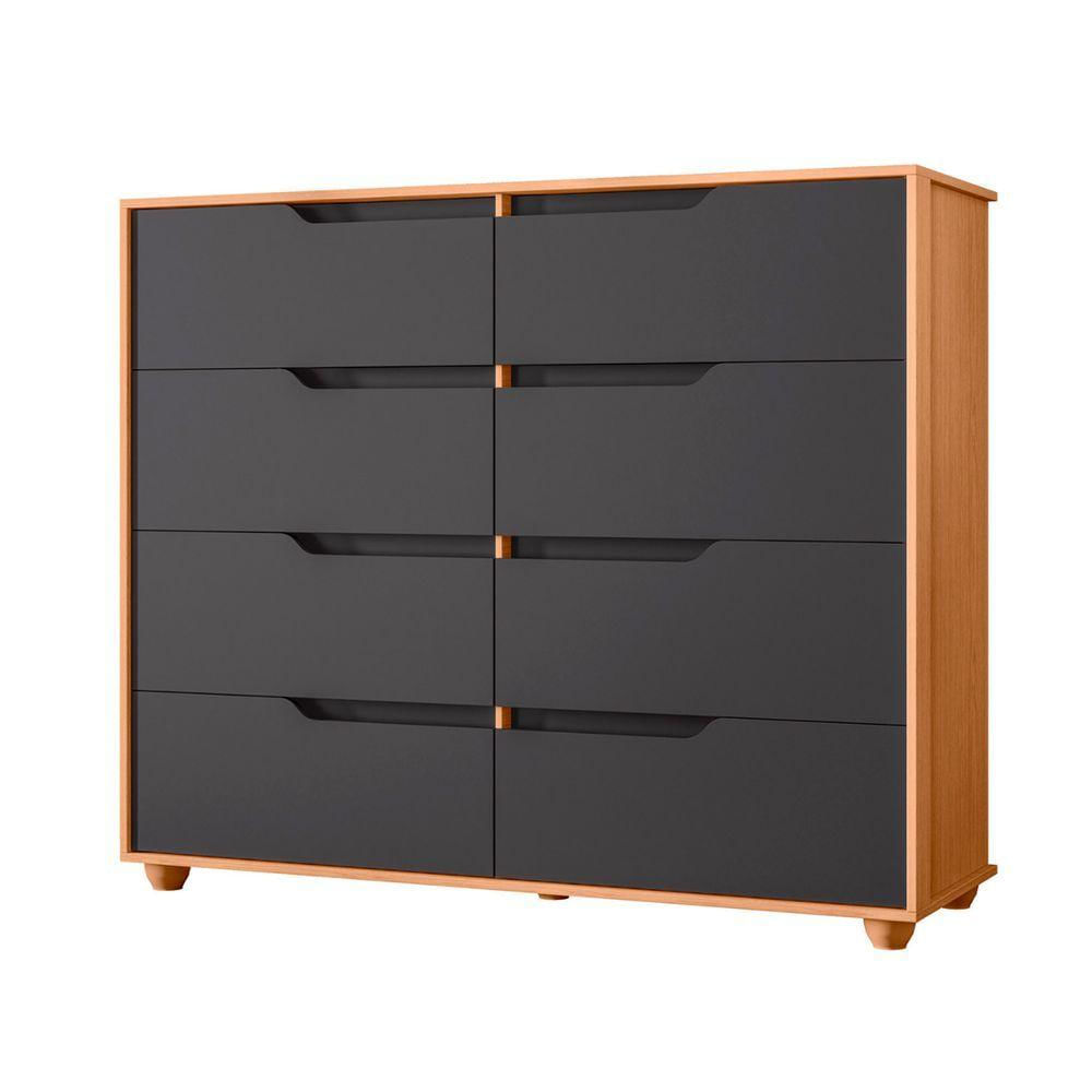 Comoda Doble 8 Gavetas Quarto Freijo Com Titanium Vistas Flex - Albatroz