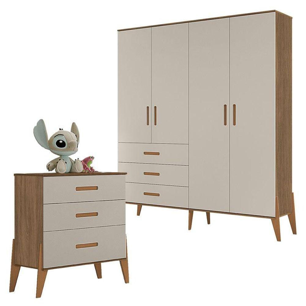 Cômoda Gaveteiro Com Guarda Roupa Infantil Emilly Carvalho Off White - Canaã