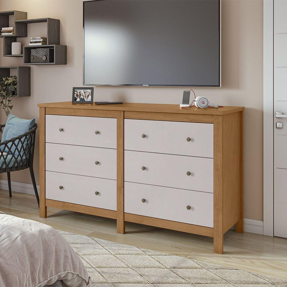 Cômoda Horizontal Maggiore Com 6 Gavetas Lopas Amendoa Clean/off White