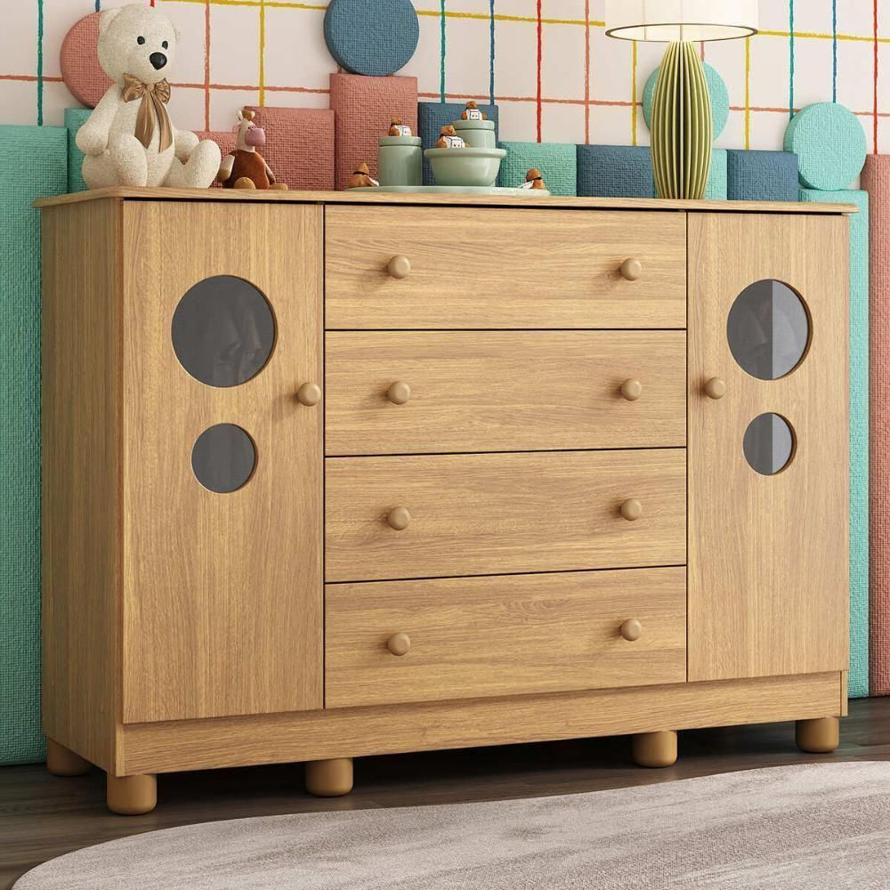 Cômoda Infantil 125cm 2 Portas Com Vidro E 4 Gavetas Bombom Multimóveis MP4465 Madeirado