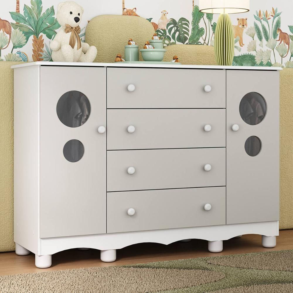 Cômoda Infantil 125cm 2 Portas Com Vidro E 4 Gavetas Suspiro Multimóveis MP4460 Branco-off White