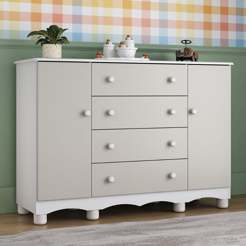 Cômoda Infantil 125cm 2 Portas E 4 Gavetas Dengo Multimóveis Mp4440 Branco/off White Branco/off White