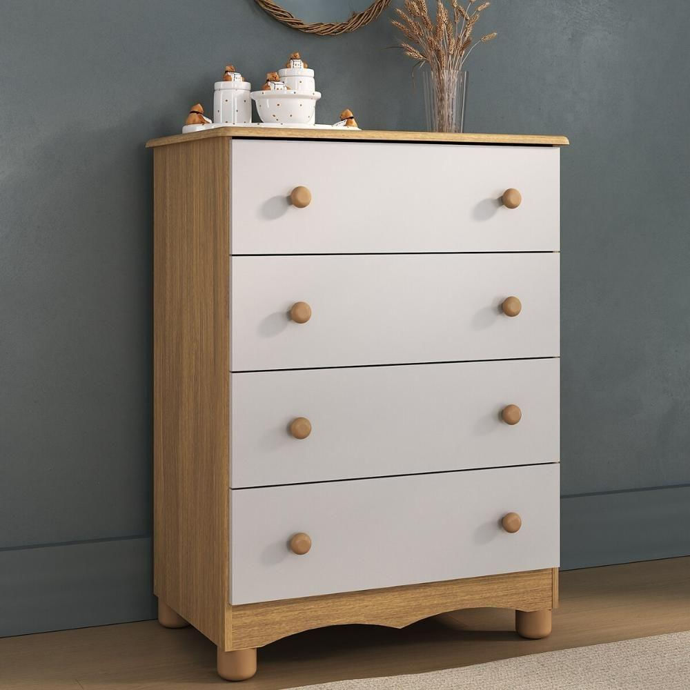 Criada para acompanhar a doçura da infância, a Cômoda Infantil 65cm com 4 Gavetas Dengo Multimóveis MP4409 traz o equilíbrio perfeito entre estilo e utilidade. Suas gavetas espaçosas ajudam a manter o quarto sempre em ordem, enquanto o visual delicado transforma o ambiente em um espaço ainda mais acolhedor. Um móvel que cuida, decora e facilita. Diferenciais: - 3 anos de garantia contra defeitos de fabricação e material. - Produzida em madeira de reflorestamento (MDP 12/15mm) com acabamento acetinado (cerca de 20% de brilho): sustentabilidade e durabilidade. - 4 gavetas: amplo espaço interno para organizar roupinhas e acessórios. - Corrediças telescópicas: permitem a abertura total e o manuseio silencioso das gavetas. - Puxadores em ABS redondos e práticos. - Pés em polipropileno e rodapé usinado: estabilidade e elegância. - Sistema antitombamento: proporciona segurança para o bebê e tranquilidade aos pais.
