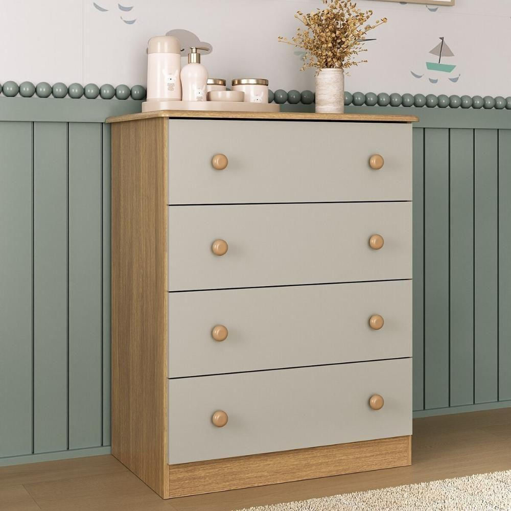 Cômoda Infantil 65cm Com 4 Gavetas Encanto Multimóveis Mp4427 Madeirado/off White Madeirado/off White