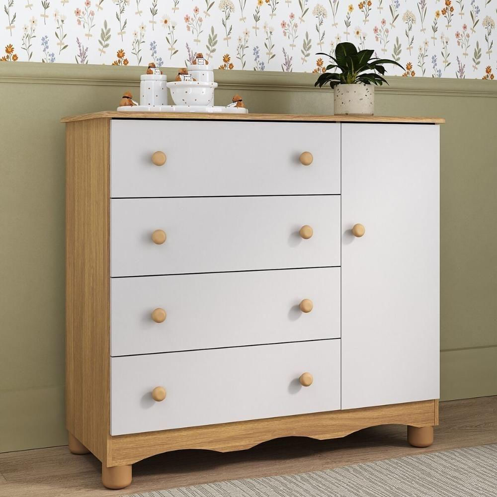 Cômoda Infantil 95cm 1 Porta E 4 Gavetas Dengo Multimóveis Mp4439 Madeirado/branco Madeirado/branco