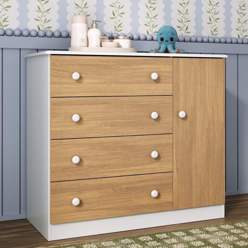 Cômoda Infantil 95cm 1 Porta E 4 Gavetas Encanto Multimóveis Mp4449 Branco/madeirado Branco/madeirado