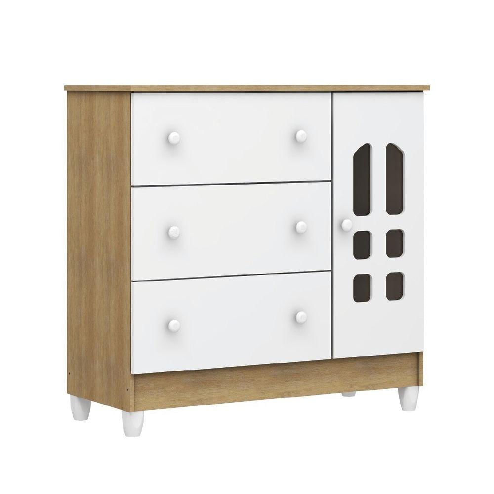 Cômoda Infantil Carolina Baby Para Quarto Bebê 3 Gavetas 1 Porta Helena Bra-mad No