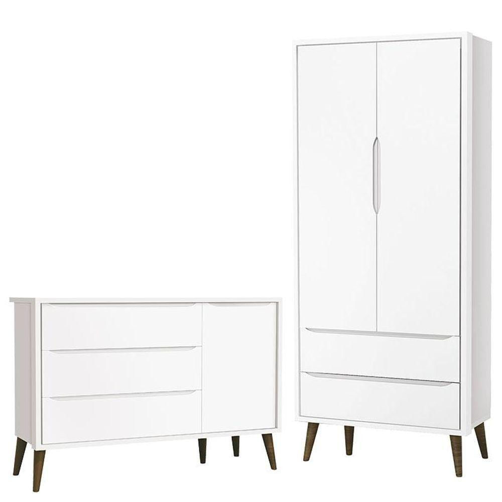Cômoda Infantil Com Porta E Guarda Roupa 2 Portas Theo Branco Acetinado Com Pés Amadeirado - Reller