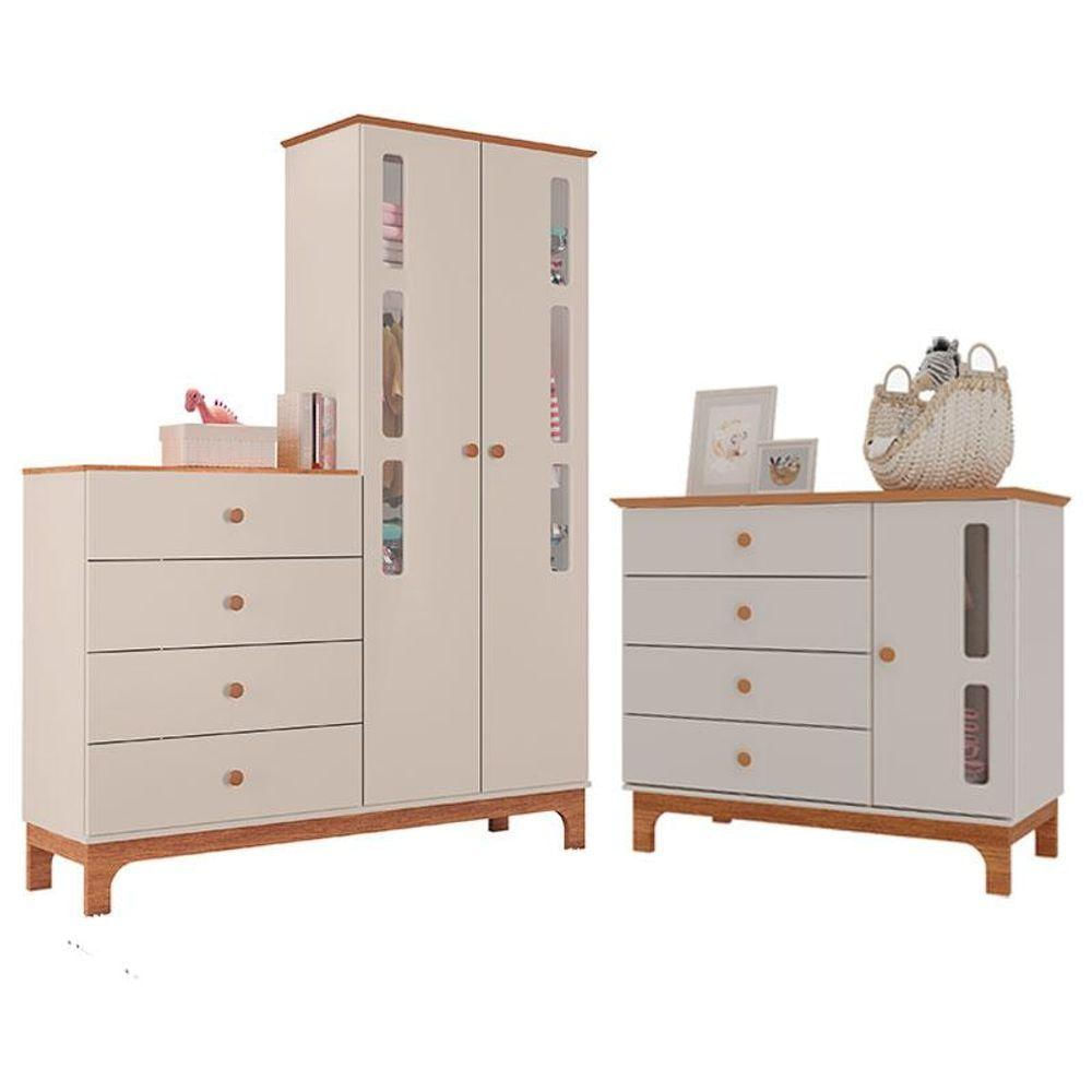 Cômoda Infantil E Guarda Roupa Com Cômoda Antonella Off White Caramelo - Canaã