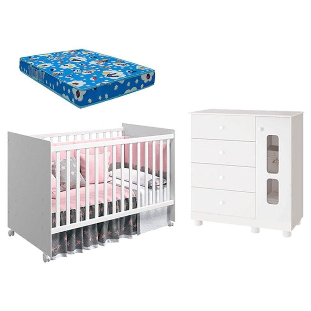 Cômoda Infantil Katatau E Berço Americano Tico Branco Brilho Com Colchão Ortobom - Reller