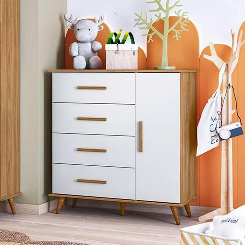 Cômoda Infantil Noah Retrô 1 Porta E 4 Gavetas Para Quarto De Bebê Nature Com Branco Acetinado