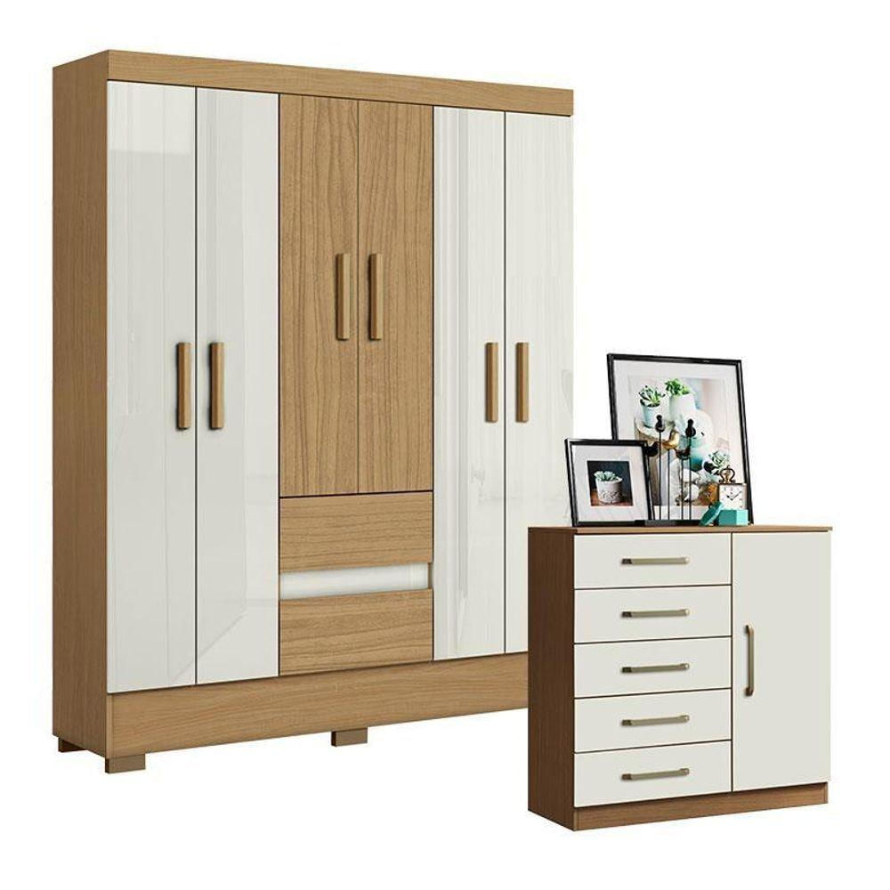 Cômoda Milão E Guarda Roupa Casal Coimbra 2005138 Atacama Off White - Aramóveis