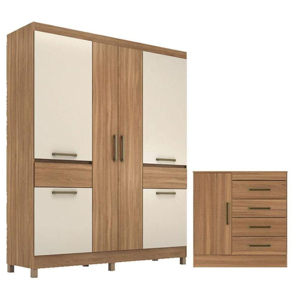 Cômoda Montevidéu E Guarda Roupa Casal Mauá Amêndola Off White - Demóbile