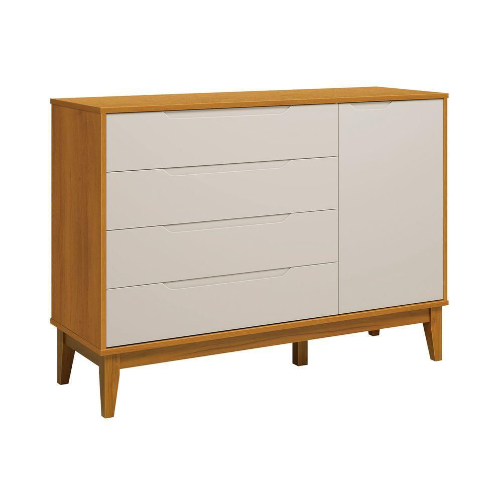 Comoda Sapateira Elfe Classic 1 Porta 4 Gavetas Areia Fosco Com Savana - Moveisaqui