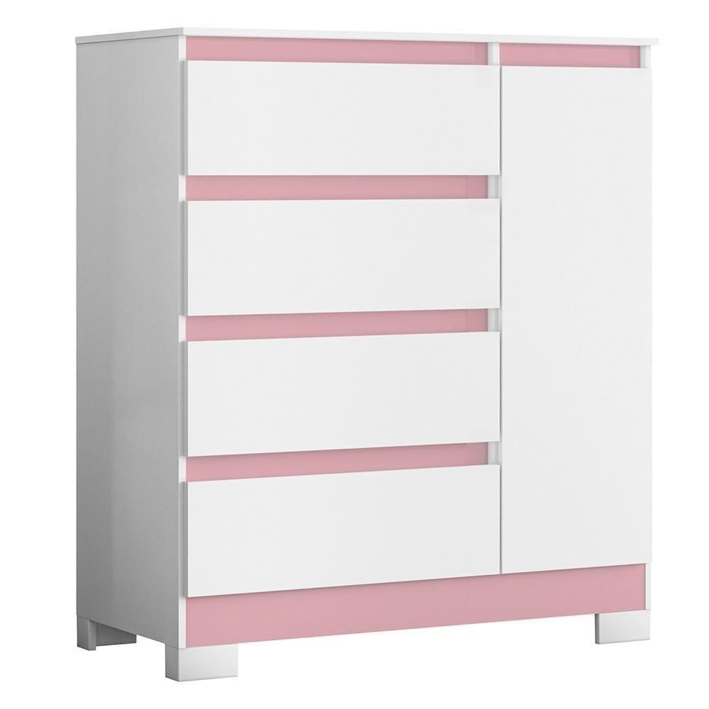 Cômoda Sapateira Olímpia 1 Porta E 4 Gavetas Quadriflex Branco/rosa - Móveis Albatroz