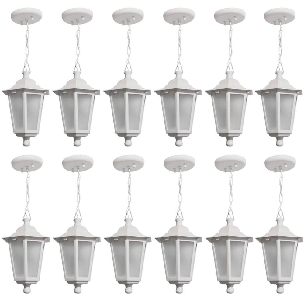 Conjunto 12 Pendentes de Teto Coloniais Luminárias Externas Gregas Brancas 58cm Dital