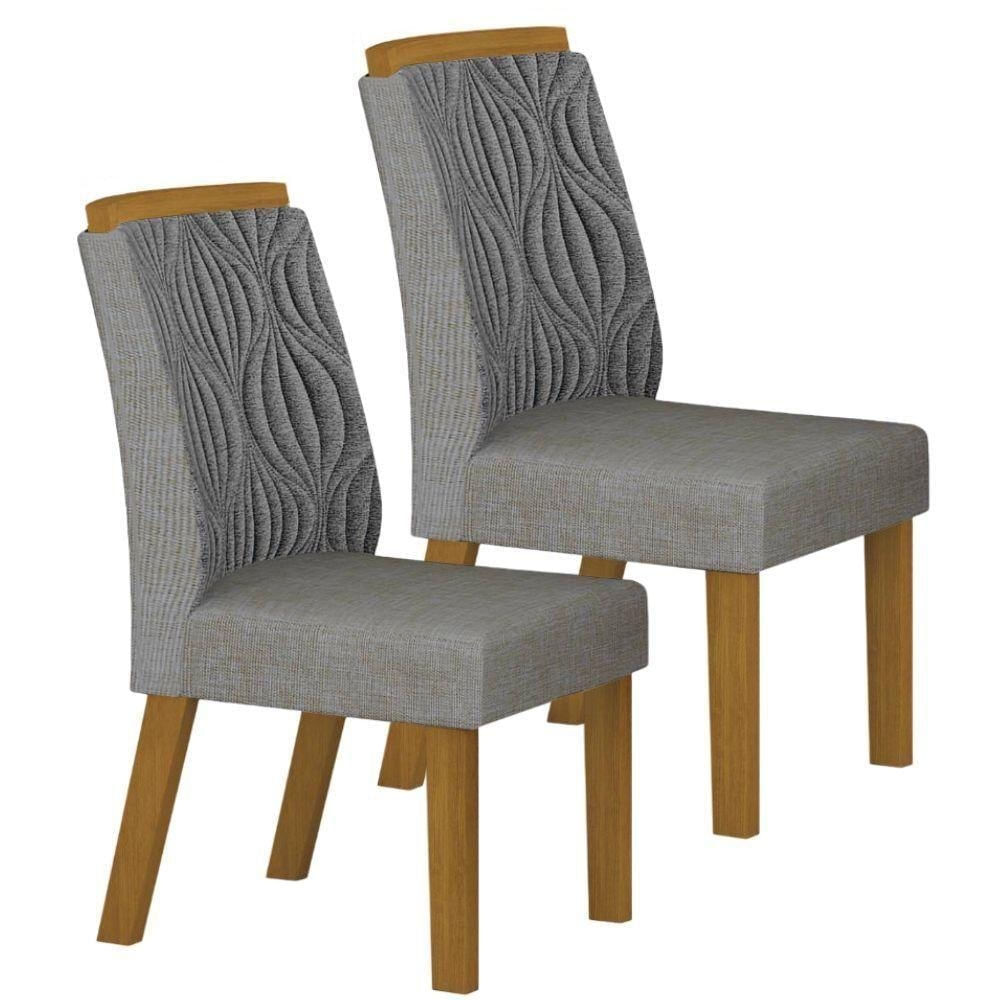 Conjunto 2 Cadeiras De Jantar Ilhéus Linho Cinza Pés Em Madeira Maciça Leifer Móveis
