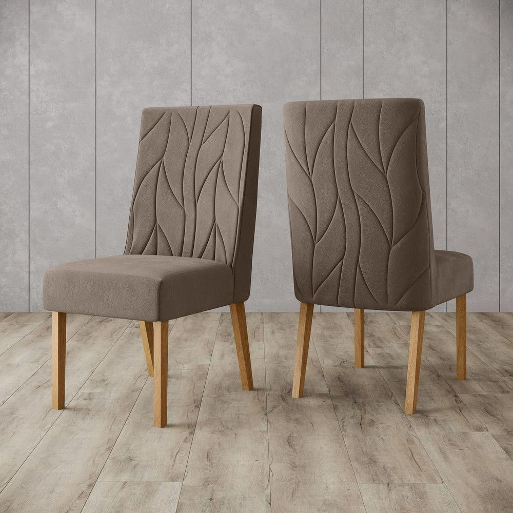 Conjunto 2 Cadeiras Estofadas Com Pés Em Madeira Eloá Henn Nature Com Marrom Amêndoa