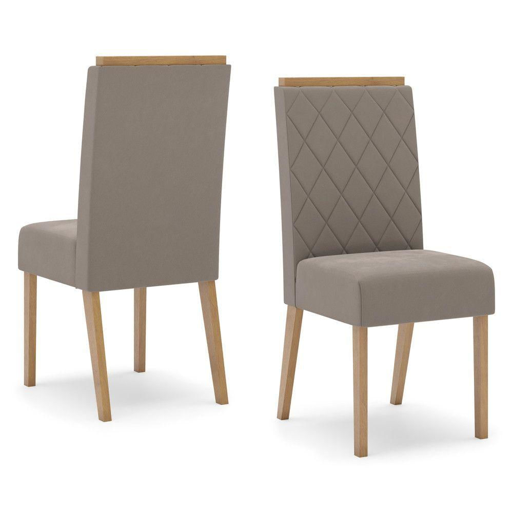 Conjunto 2 Cadeiras Estofadas Com Pés Em Madeira Nina Henn Nature Com Marrom Amêndoa