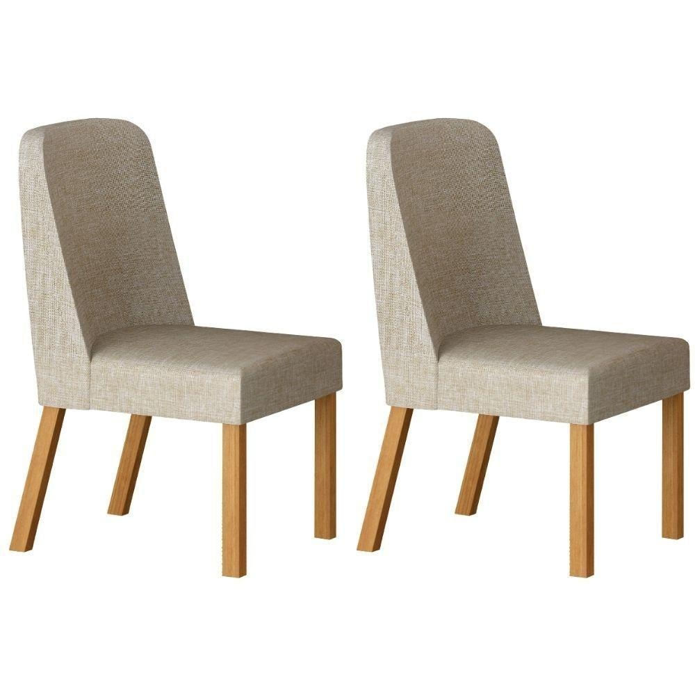 Conjunto 2 Cadeiras Isis Linho Palha Pés Em Madeira Leifer Móveis