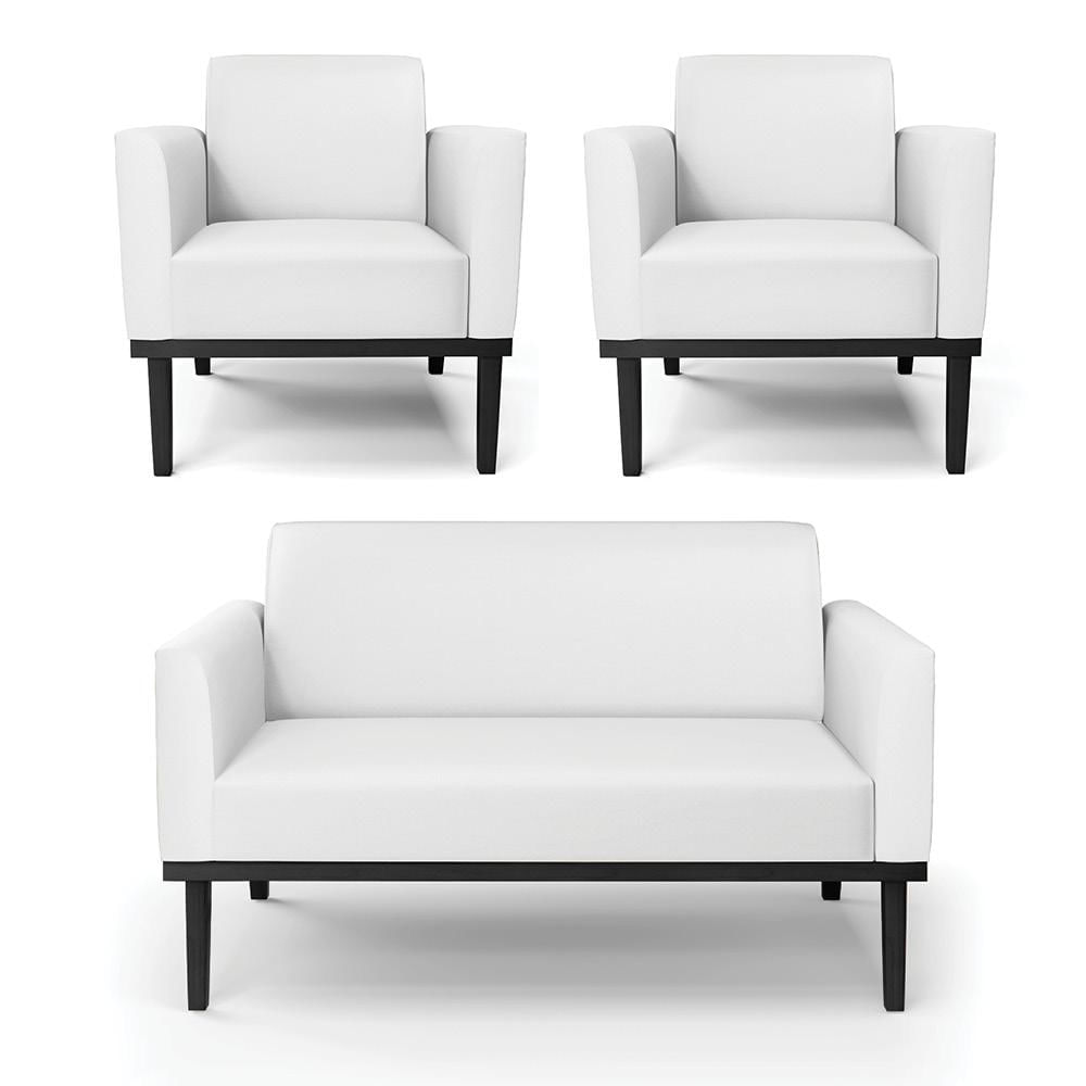 Conjunto 2 Poltronas e 1 Namoradeira Decorativa Isabella Pés Fixo em Madeira Preto PU Branco G19 - Gran Belo