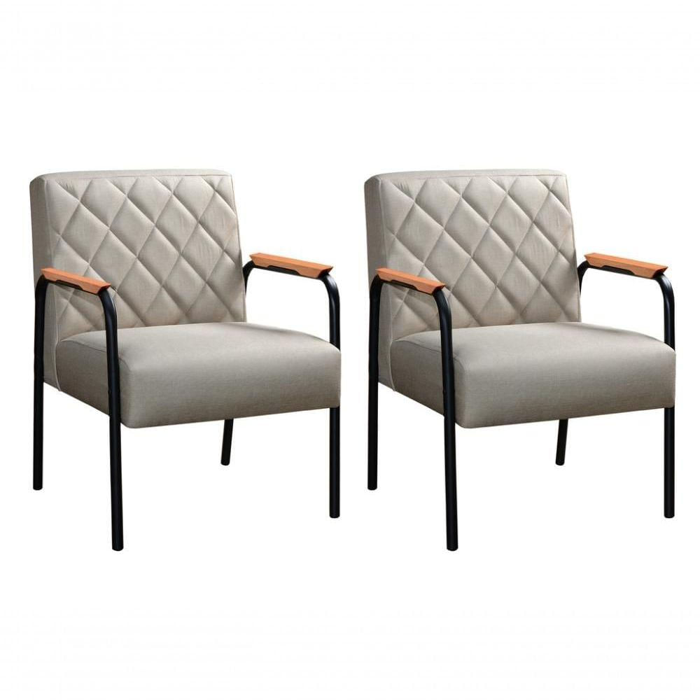 Conjunto 2 Poltronas Ludmilla Cadeira Decorativa Sala Recepção Escritório - Linho Bege 140